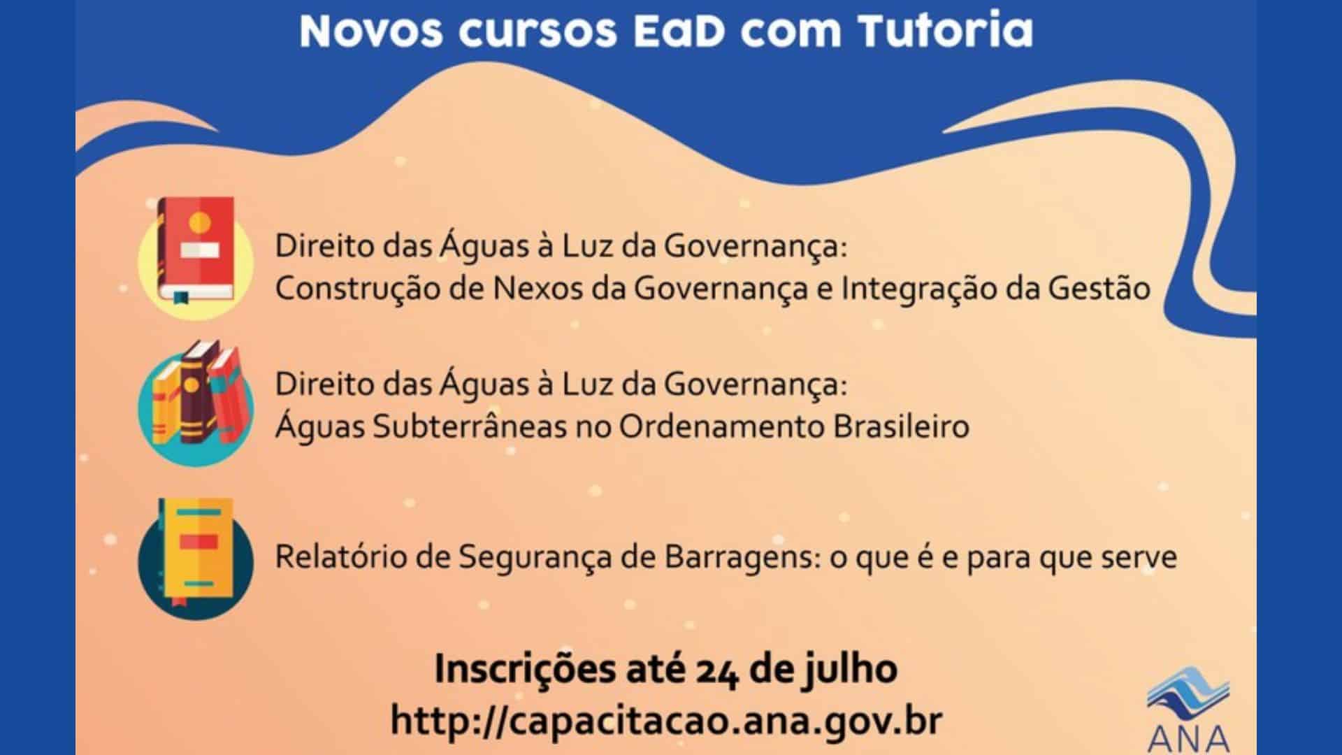 ANA – Agência Nacional de Águas e Saneamento Básico receberá inscrições para três cursos com tutoria na modalidade de ensino a distância (EaD) até 24 de julho