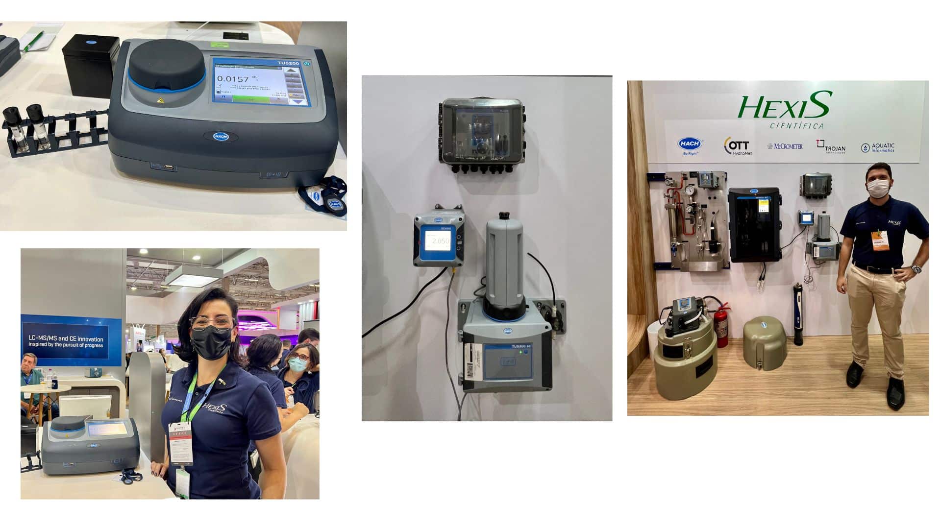 A empresa parceira Hexis estava demonstrando seus equipamentos, como por exemplo, as soluções inovadoras para análise de turbidez da água da empresa Hach, com equipamentos de bancada e também sistema de medição de processo em tempo real e em fluxo contínuo, com a garantia de medições precisas para aplicações de água potável e água pura.