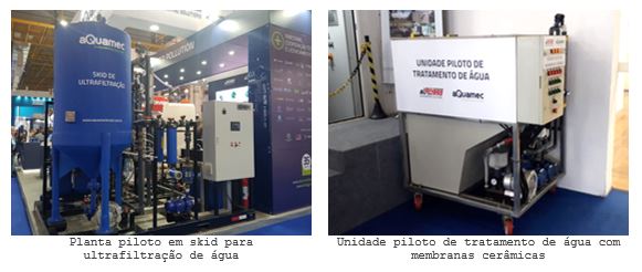 Os stands de aQuamec e aLBriggs na Fenasan 2019 estão repletos de tecnologias expostas. Entre as soluções em exposição, estão duas plantas piloto, sendo uma para ultrafiltração de água e outra para tratamento de água com membranas cerâmicas.