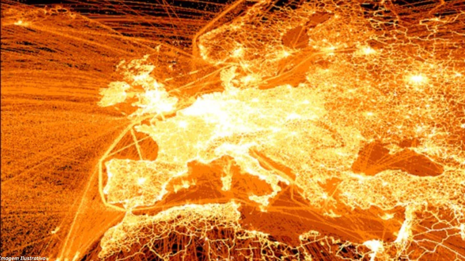 Mas uma imagem mais significativa (embora mais obscura) é desenhada pelas enormes quantidades de navegação e rotas aéreas que iluminam o Atlântico e o Mediterrâneo em geral.