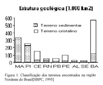 Cada vez mais os nordestinos do Brasil são forçados a explorar novas fontes de água para enfrentar de modo efetivo as condições adversas da Região. No Nordeste do Brasil existe um grande volume de água no subsolo capaz de resolver a crise da água desta região. No entanto, devido ao fato de 51% da área total do Nordeste, cerca de 788.358 km2, estarem localizados sobre rochas cristalinas o contato no subsolo entre a água e a rocha ao longo do tempo leva a um processo de salinização. O alto teor de sal da água a torna imprópria para o consumo humano. Através da figura 1[SBPC, 1995], percebe-se que, com exceção do Piauí, todos os estados nordestinos localizados no polígono das secas possuem a maior parte do território sobre terrenos cristalinos.