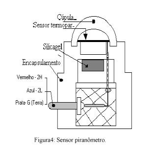 O piranômetro é um instrumento usado para medir radiação solar [FRAIDENRAICH, 1985]. Devido a seus detalhes construtivos, é capaz de medir a radiação proveniente de todo um hemisfério. Sua saída é expressa em W/m2. A figura 4, mostra os detalhes construtivos deste instrumento.