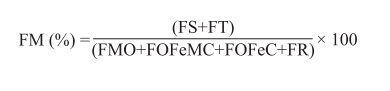 Para estimar a mobilidade do Cu e Zn no solo, foi empregado o índice “fator mobilidade (FM)” proposto por Kabala e Singh.28 Uma vez que os metais ligados às frações FMO, FOFeMC, FOFeC e FR são menos móveis no solo, sendo mais fortemente vinculados aos constituintes do solo do que as frações FS e FT, o referido índice descreve o potencial de mobilidade dos metais no solo. Assim, este índice foi obtido a partir da Equação 2: