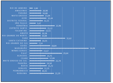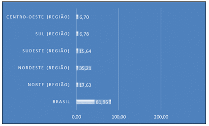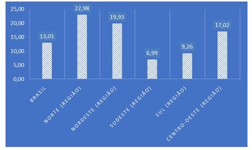 Levando em consideração a taxa de incidência por 10 mil habitantes, no Norte são 22,9 contra 19,9 do Nordeste, 17,2 do Centro-Oeste, 9,26 do Sul e 6,99 do Sudeste.