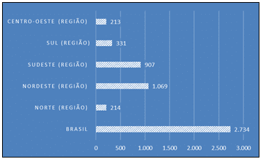 Podemos dizer que, em 2019, a falta de acesso à água tratada e ao esgotamento sanitário resultaram em 2.734 óbitos, uma média de 7,4 mortes por dia de pessoas. No Nordeste, os óbitos ultrapassam mil casos, no Sudeste, 907 mortes registradas. O Norte registrou 214 casos.