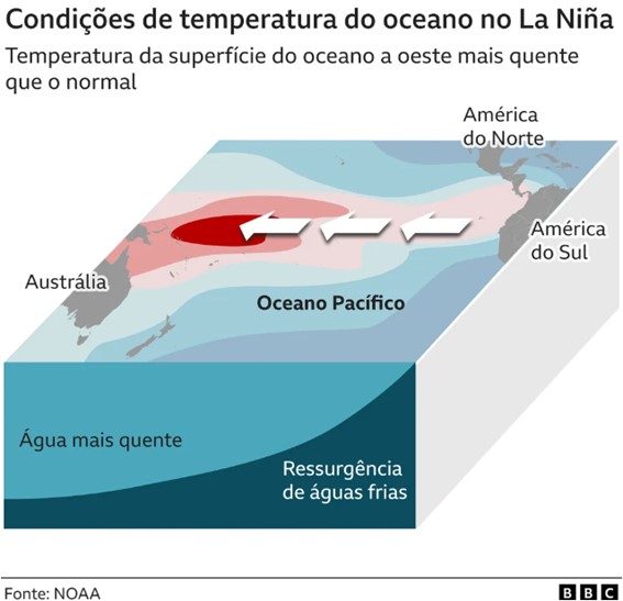 As temperaturas globais e os padrões de chuva são afetados por um fenômeno climático conhecido como El Niño/La Niña