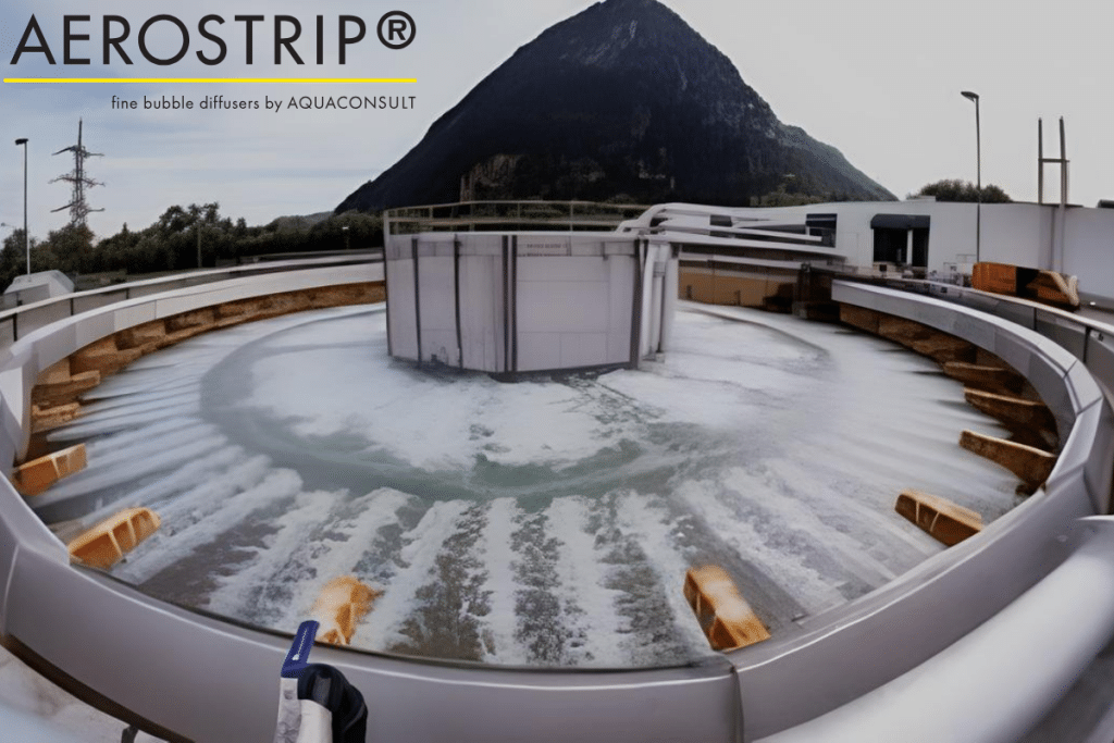 Especialmente durante a temporada de esqui, o nível A acabou se tornando um gargalo com uma eficiência cada vez menor. Hoje, o processo AAA é usado em Strass. Nesse processo, as águas residuais que entram nos tanques de sedimentação existentes passam por um processo de sedimentação e filtragem de duas horas. “Triplo A”, que significa “Adsorção Ativada Alternada”. O ar finamente insuflado desempenha um papel decisivo na ativação da biossorção. o inovador processo Triplo A no clarificador primário. Os difusores AEROSTRIP da AQUACONSULT ANLAGENBAU GMBH desempenham um papel central neste processo.