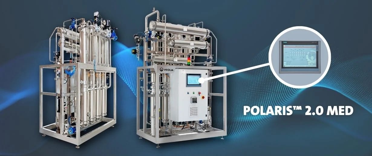 Projetadas para garantir o fornecimento constante de água injetáveis , as unidades PoIarisTM 2.0 Multiple Effect Distiller (MED) possuem capacidades que variam de 250 a 4.500 litros por hora com diferentes números de colunas para otimizar o consumo das utilidades. Para aumentar a eficiência em termos de consumo e desperdício de energia, o PolarisTM 2.0 MED adota um processo de destilação por filme descendente para garantir alta eficiência e um arranque rápido. Entretanto, o sistema atinge um nível de blowdown de apenas 10%, ajudando a minimizar o desperdício de água, e as colunas – com estrutura em aço inoxidável – também foram concebidas tendo em mente a facilidade de manutenção. O sistema também possui trocadores de calor e coluna isolados, bem como pressão e controle PID.