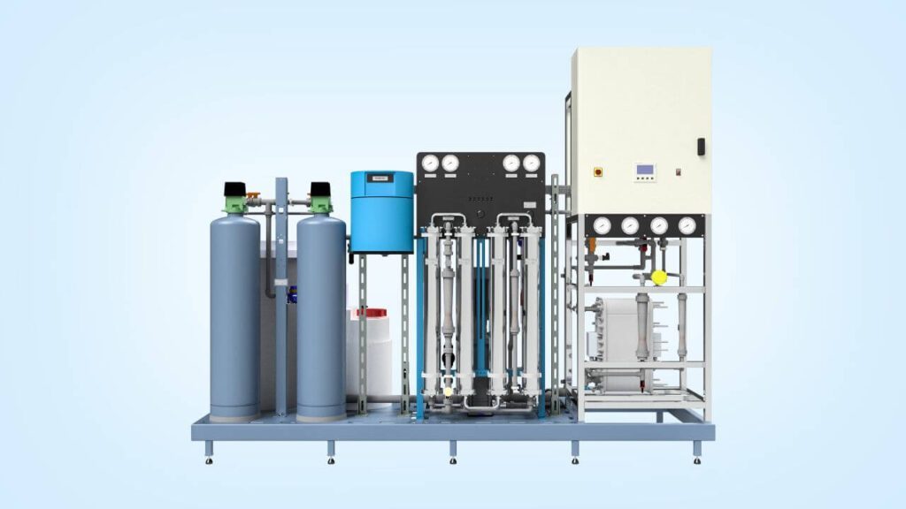 Para remover a maior parte da carga iônica é usado o sistema de Osmose Reversa (RO).