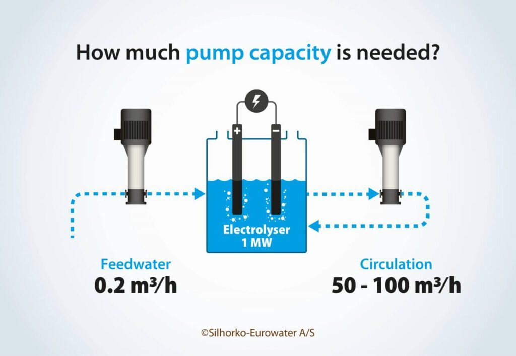 As bombas são usadas em vários locais nos sistemas de eletrolisadores, mas o papel mais central é a circulação sobre a pilha do eletrolisador.