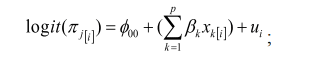 Dentre essas categorias de modelos, encontram-se os hierárquicos ou multiníveis, que permitem a inclusão de variáveis em segundo nível hierárquico, no presente estudo representadas por características dos municípios. A estratégia de seleção do melhor modelo baseou-se em regressão logística (modelo 1), selecionando as variáveis estatisticamente significativas no primeiro nível hierárquico. Nos modelos multiníveis, foram testadas as variantes: o intercepto aleatório (modelo 2); os coeficientes aleatórios (modelo 3); e o intercepto aleatório com variáveis de segundo nível hierárquico (modelo 4). O último modelo foi o que melhor se ajustou aos dados, formalmente representado por: