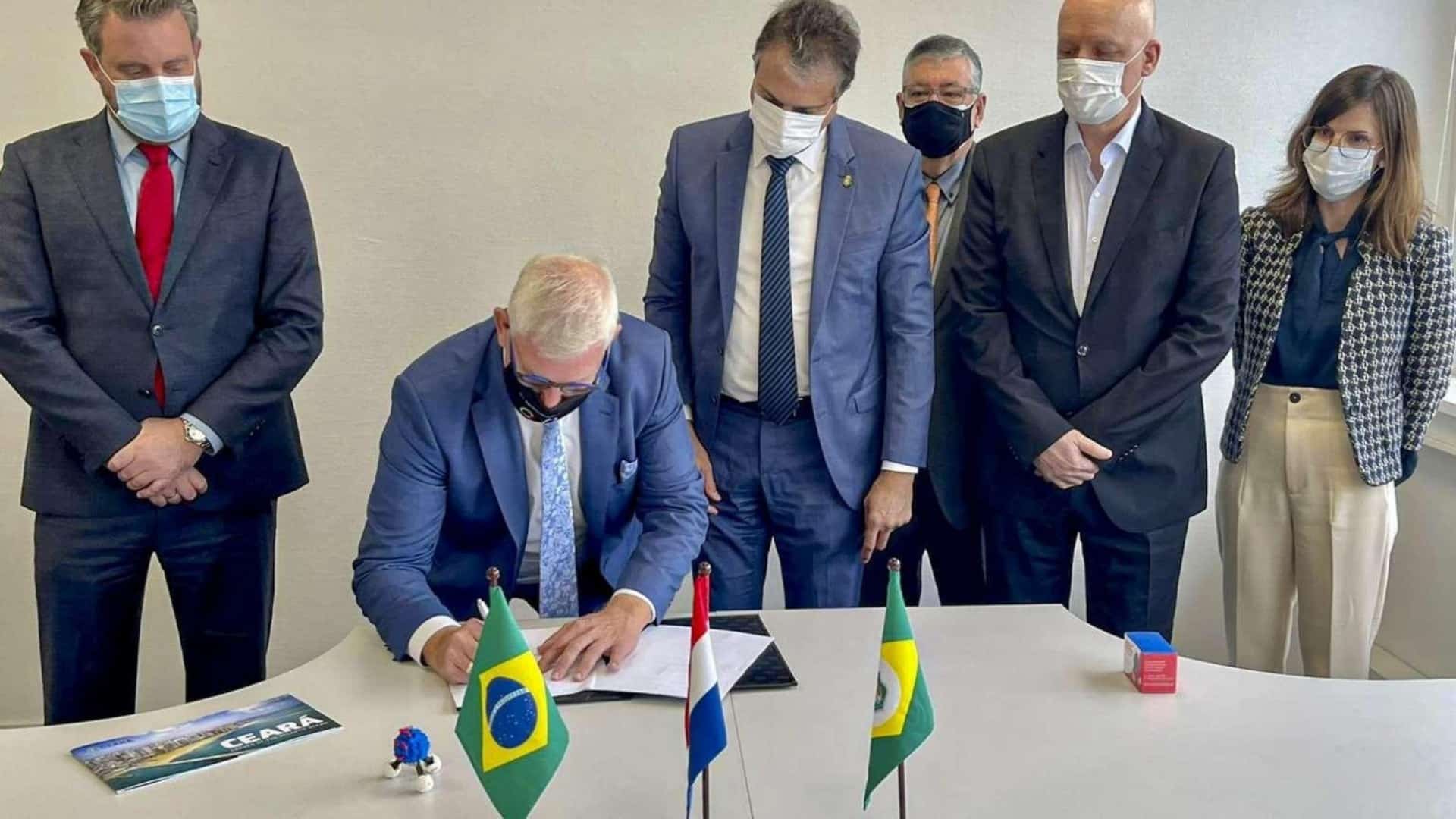 O acordo foi firmado entre o governador Camilo Santana e o consórcio Transhydrogen Alliance na quarta-feira (27) em Roterdã, na Holanda.