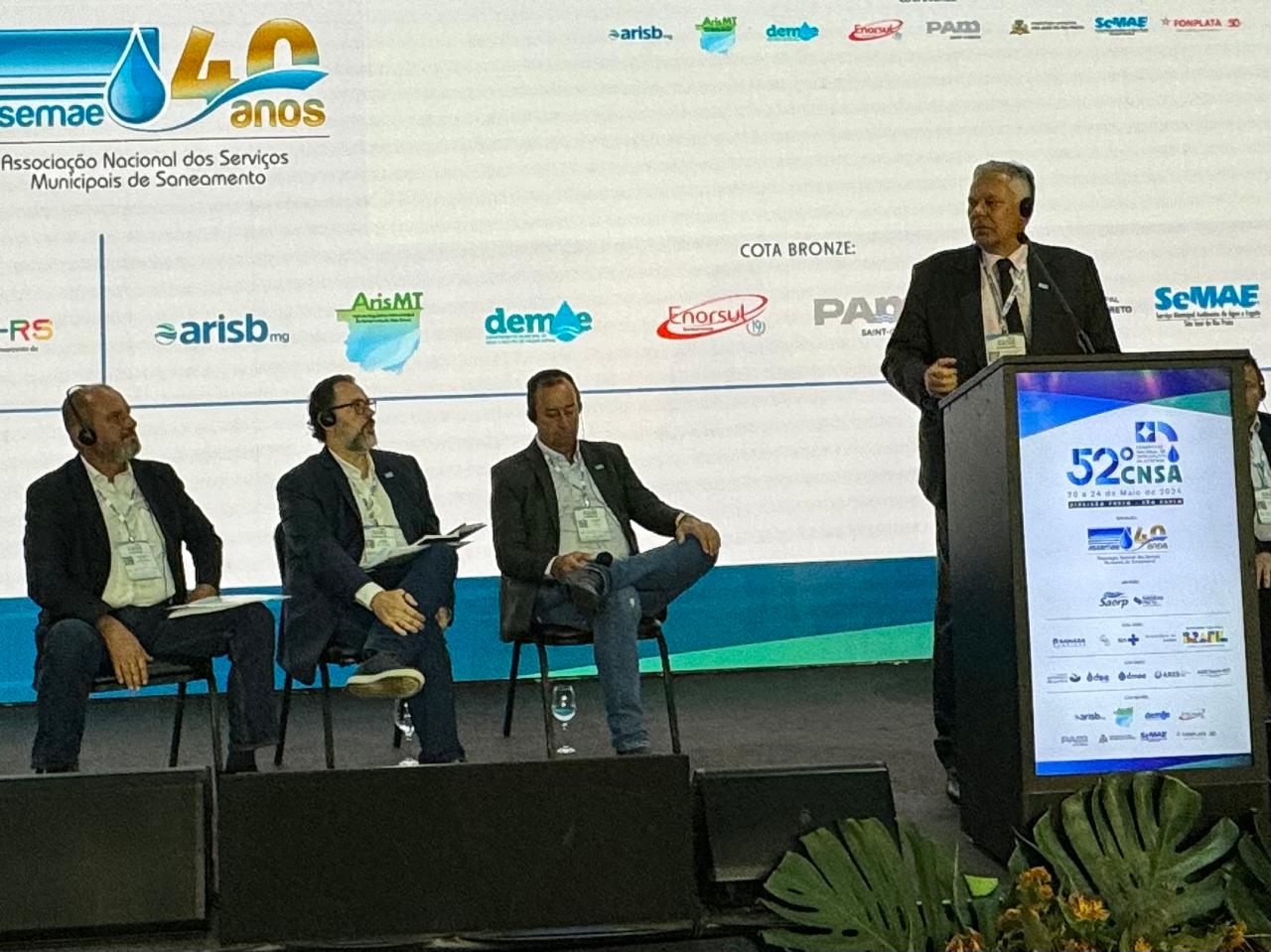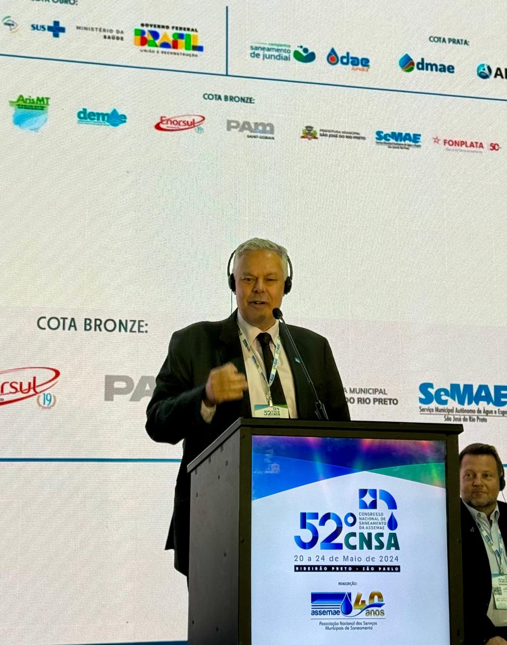 Rodopiano Marques Evangelista, Presidente da Assemae, comenta no 52º Congresso de Saneamento da ASSEMAE as diversas temáticas abordadas com destaque para os desafios impostos pelas mudanças climáticas, como a tragédia do Rio Grande do Sul