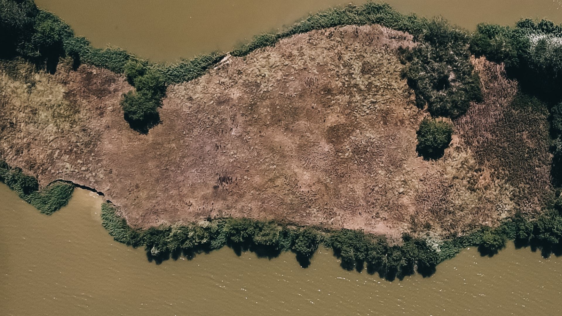 Devido ao baixo nível das águas, o local revelou uma ilha.