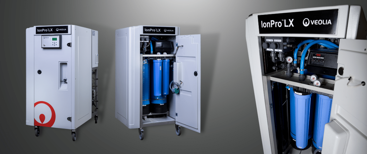 Ao procurar produzir volumes menores de água de alta pureza com baixos níveis de bactérias, o sistema IonPro™ LX seria nossa recomendação.