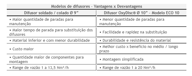 Atualmente, existem modelos de difusores de ar fabricados em polipropileno (PP GF30), material de alta resistência. O difusor de ar circular de bolhas finas OxyDisc® ECO-10, da empresa americana Jaeger Aeration, representada no Brasil pela aQuamec, é um dos modelos que se destaca. Por possuir características construtivas inovadoras e montagem roscada, apresenta fácil manuseio na instalação, menor tempo de montagem e maior versatilidade em futuras manutenções e substituições, sem necessidade de intervenções na tubulação.