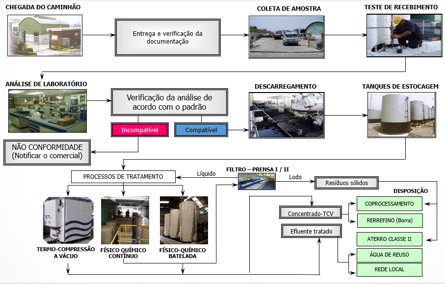 Físico-químico: Realizado nas unidades de Jandira, Jundiaí, Indaiatuba, Rio de Janeiro e Camaçari, o tratamento físico-químico é aplicado a efluentes com característica inorgânica que demandam reações como, precipitação química, quebra ácida, oxidação, redução, entre outros.
