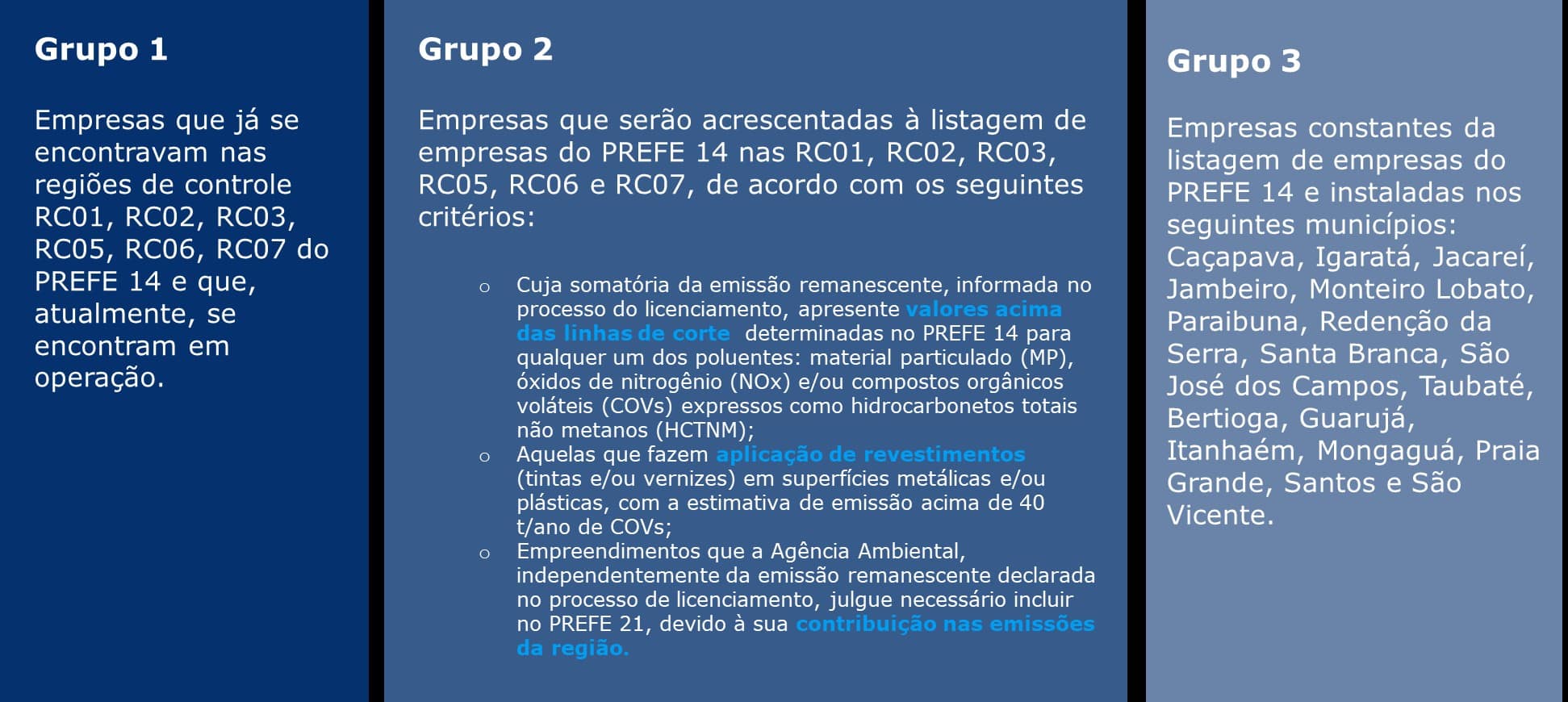Adicionalmente, no PREFE 21, a Cetesb segmentou as empresas em três diferentes grupos: