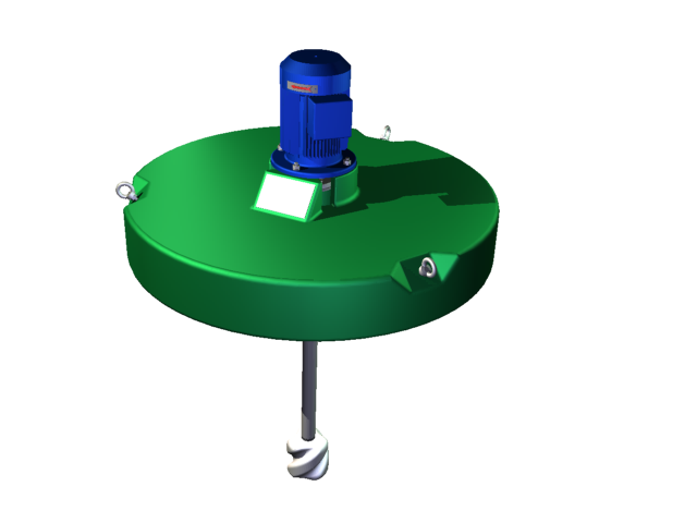 É composto de um motor elétrico ligado a um eixo tubular, com uma hélice propulsora em sua extremidade, montados sobre um flutuante, mantidos em posição de trabalho por cabos de fixação. No funcionamento, a hélice propulsora submersa na massa líquida, desenvolve uma depressão (vácuo) que induz uma vazão de ar para dentro do líquido a alta velocidade, através de orifícios localizados no eixo tubular, acima do nível líquido e próximo ao motor. Transferência de oxigênio = 1,2 kg.O2/cv.h em temperatura ambiente e ao nível do mar. (CNTP)