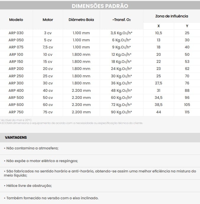 O ROTAIR é constituído por motor elétrico acoplado a um redutor de velocidade em cujo eixo de saída está acoplada a turbina de aeração.