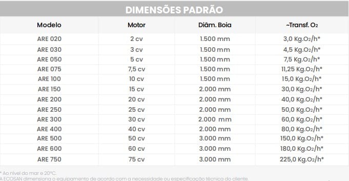 Os Aeradores são equipamentos destinados a oxigenar o efluente com o intuito de oxidar a matéria orgânica, proporcionando condições favoráveis para o crescimento de microorganismos, além de promover uma efetiva mistura do lodo, evitando pontos de sedimentação. É um meio eficiente para promover aeração de massas líquidas.