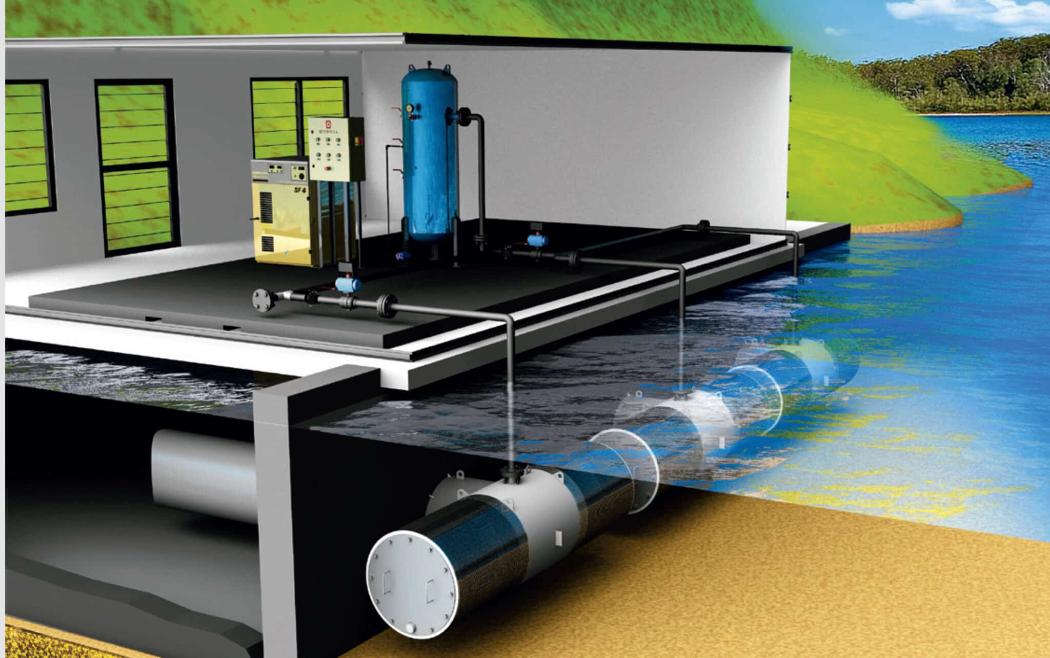 A peneira filtrante para tomadas d’água – intake é utilizada na captação passiva de água de rios, lagos, reservatórios e mar. É um filtro estático submersível, sem partes móveis e sem impacto visual. Por ser um sistema estático, a manutenção necessária é mínima.
