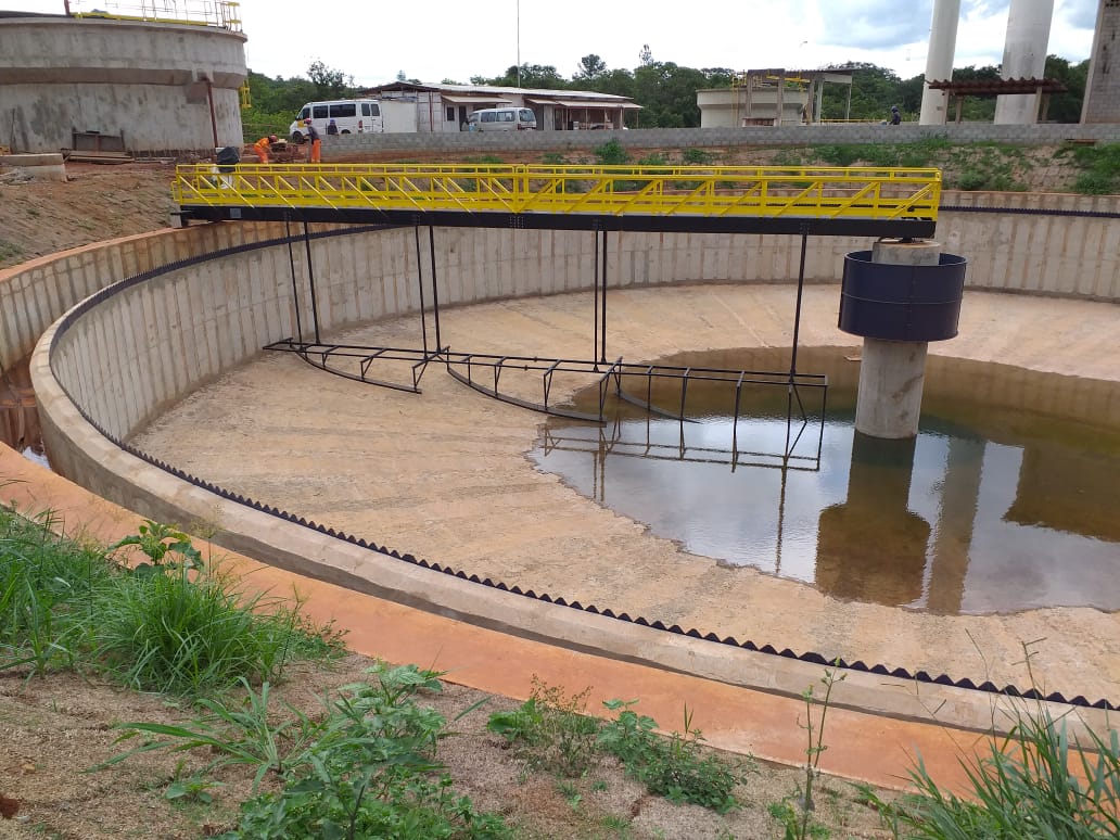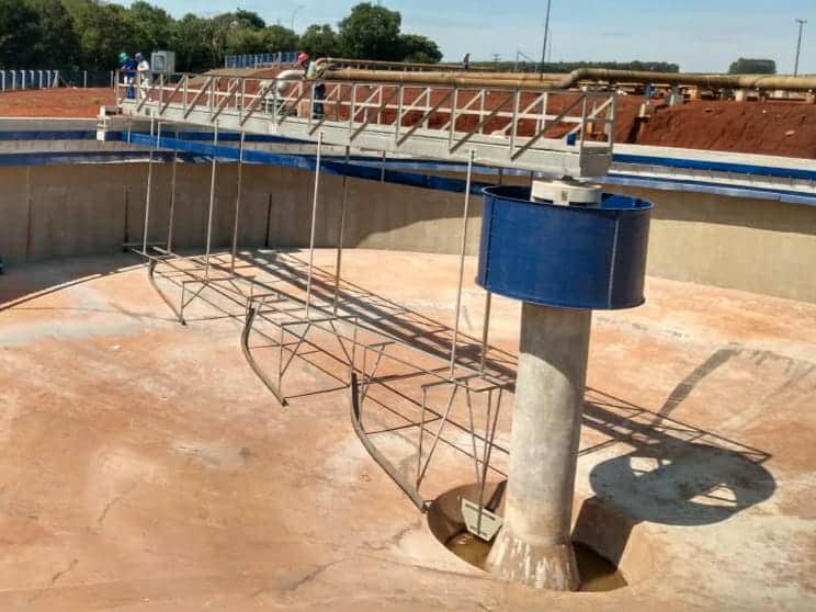 – REMOVEDOR DE LODO DE ACIONAMENTO CENTRAL modelo RLAC. Remoção por raspagem, montado em tanque circular com ponte fixa radial ou diametral, braços raspadores de fundo diametrais, acionamento giratório dos braços por motoredutor e eixo central ou gaiola de torque.