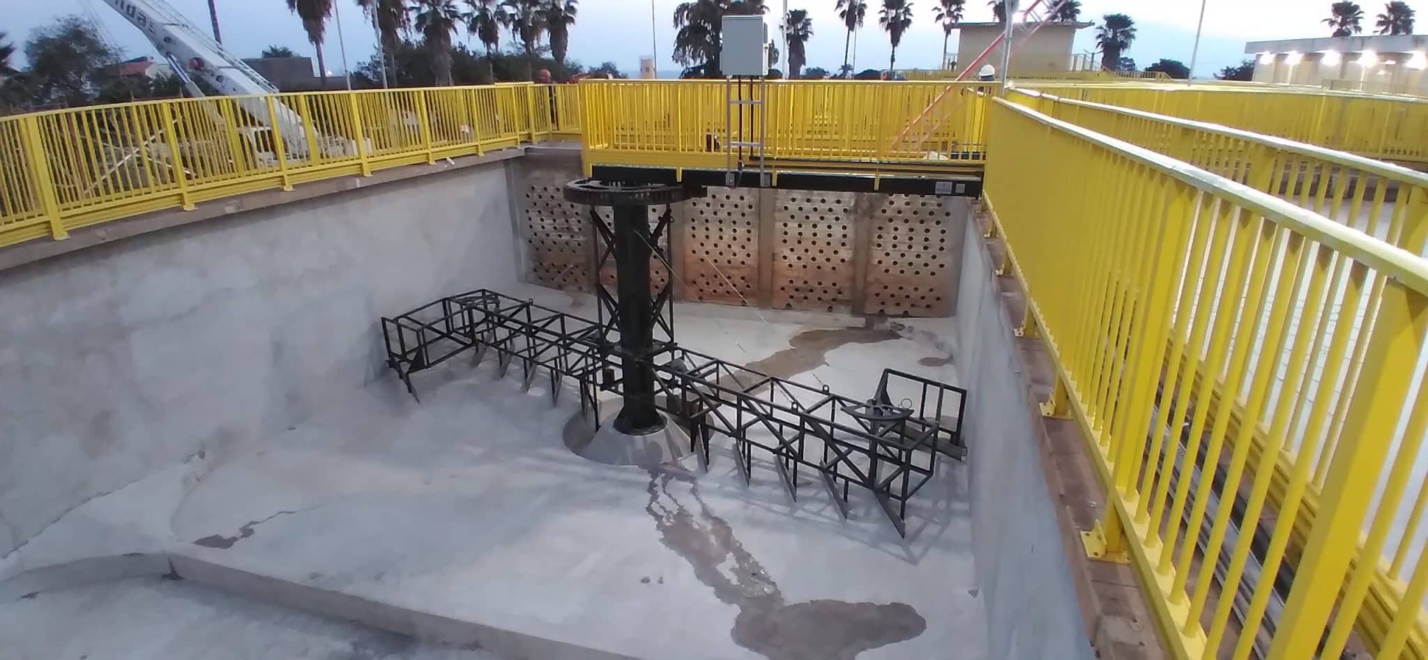 – REMOVEDOR DE LODO SUBMERSO POR SUCÇÃO TIPO TELESCÓPICO modelo RLTS. Remoção por sucção, montado no fundo de tanque retangular, com braços succionadores tubulares móveis e tubo rígido central de descarga, movimentação por cabos de aço, polias, motoredutor e tambor de enrolamento.