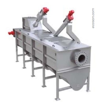 O Sistema de Tratamento Preliminar Compacto modelo ECO P, tem por finalidade básica a remoção de partículas finas, areia e parte da gordura/óleos presentes no efluente. O conjunto se apresenta como alternativa aos sistemas convencionais por possuir dimensões reduzidas em virtude de sua remoção contínua de detritos associada a combinação de processos que aceleram o processo de sedimentação da areia e flotação dos óleos e graxas, além de simplicidade de implantação, sendo do tipo “plug and play”.