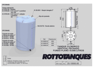 A Rottotanques Brasil pode personalizar este tanque conforme seu uso e necessidade, adaptando inclusive a espessura do material em função do produto armazenado e condições de uso.