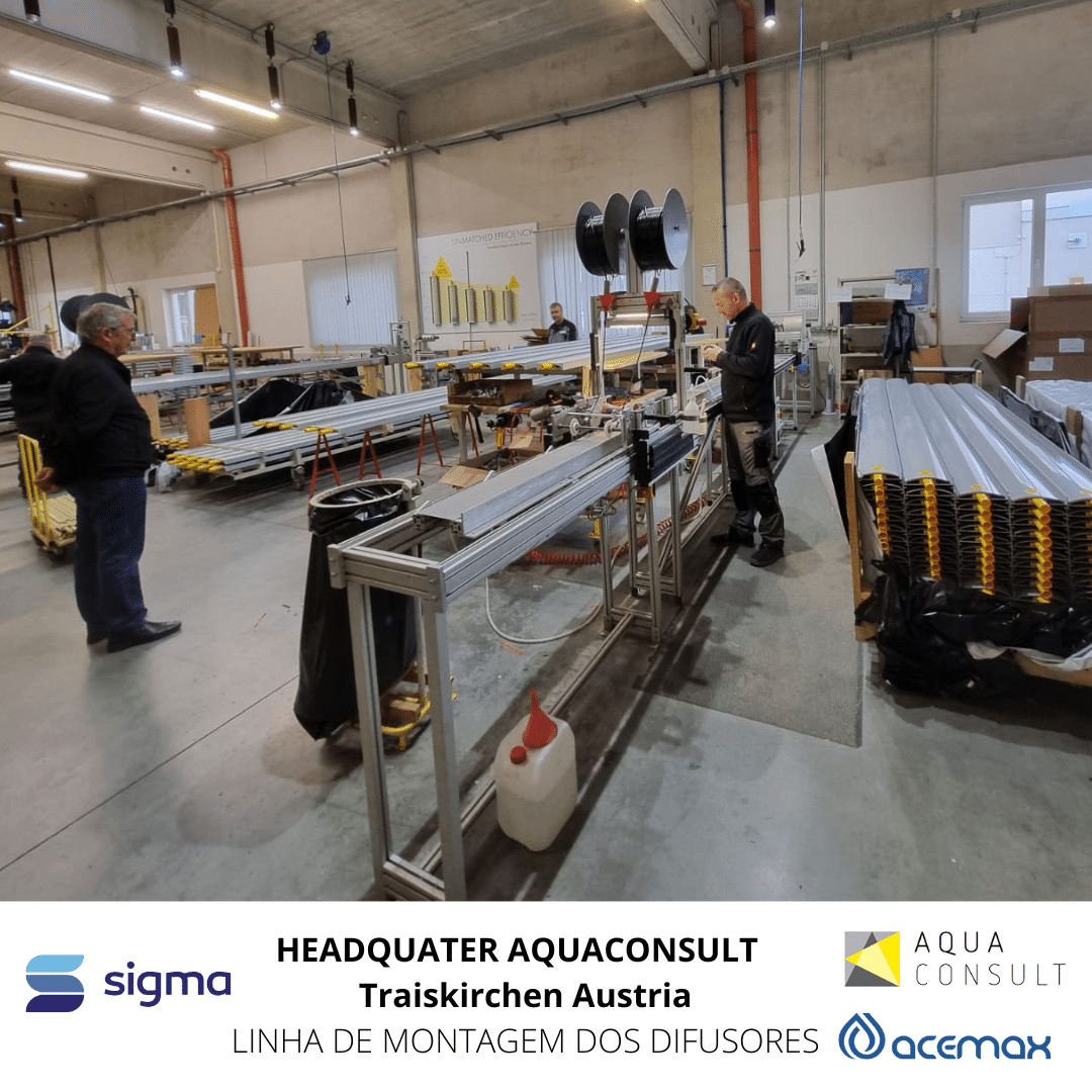 AQUACONSULT é um nome associado à tecnologia de aeração mais eficiente no tratamento de águas residuais em todo o mundo. A instalação de produção austríaca fica ao sul de Viena, na cidade de Traiskirchen e serve como sede da AQUACONSULT. Testes rigorosos são realizados em cada difusor Aerostrip na fábrica para garantir o melhor desempenho possível.