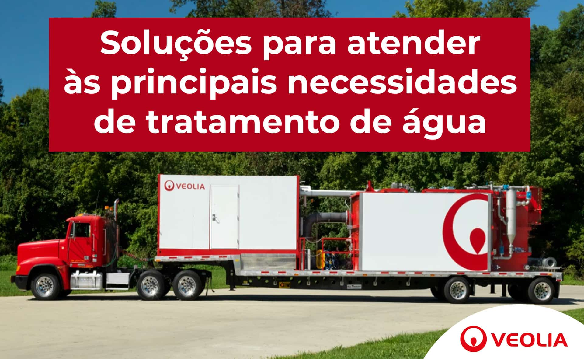 A Veolia oferece uma ampla gama de soluções que atendem qualquer necessidade de tratamento de água, seja de curto, médio ou longo prazo. Esses serviços de tratamento e reuso de água contam com uma grande frota de sistemas móveis que indústrias e municípios podem solicitar em forma de locação em caso de falta de abastecimento ou para períodos de variação na vazão de água.