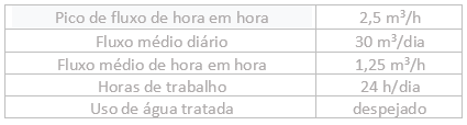 Uma vez realizado o piloto, utilizando para isso, valores máximos de água bruta com cada uma das correntes de processo, os seguintes parâmetros de projeto da planta foram estabelecidos, visando cumprir os limites de vazão para o leito do rio, estabelecidos na legislação aplicável: