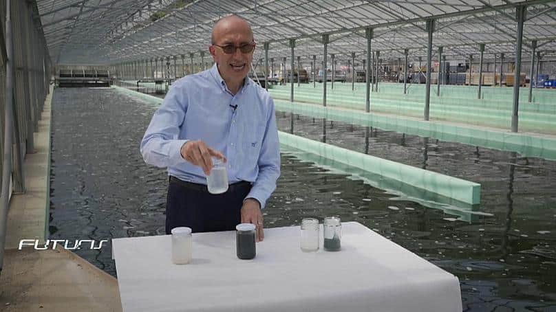 Luz solar, dióxido de carbono e águas residuais. É tudo o que as algas precisam para absorver os poluentes e crescer. “Essa alga é capaz de armazenar os chamados contaminantes, como os nitratos, que são os nutrientes principais para o crescimento das algas. A alga é capaz de armazená-los como proteínas nos seus tecidos através da fotossíntese, o que permite aumentar a sua concentração nas culturas”, explicou Daniele Carlini, cientista ambiental.