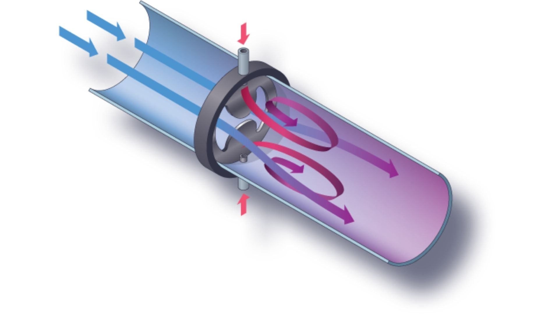 O misturador estático Westfall 2800 mistura fluidos rapidamente por meio de uma combinação de liberação de vórtice alternada e intensa turbulência de zona de cisalhamento, com mistura alcançada em seis diâmetros.